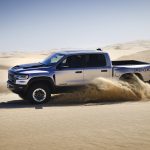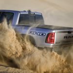 Since the rear of the truck is what most people will see if they’re not sitting in the RHO, the design team positioned a large R-A-M badge, like what is seen on Rebel, across the tailgate. Center identification marker lights, like what is seen on Ram heavy-duty models, are tucked between the tailgate and rear bumper. Oversized tow hooks, found at the front and rear of the truck, and integrated 5-inch dual exhaust ports drive the functional performance objective home.