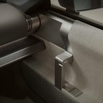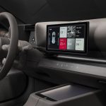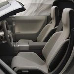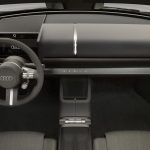 The interior of the Audi Concept C focuses on architectural simplicity with geometric forms, high-quality materials, and anodized aluminum physical controls offering tactile feedback and the unmistakable “Audi click.” The steering wheel features a metal-ring centerpiece and a minimal “shy tech” layout.