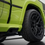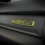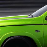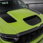 - Exterior features include a bold Sublime Green paint finish with satin-black “C-stripes” down the sides, black roof and mirrors and a custom hood scoop.
