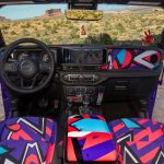 - Interior upgrades: Katzkin premium leather with contrasting stitching (orange & purple), Mopar pedal covers, floor mats, etc.