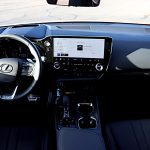 From the outside, the NX retains its familiar posture: sleek roofline, Lexus’ intricate grille pattern, and a presence that walks the fine line between discreet and distinctive. It doesn’t scream for attention, but once you’ve seen it, you remember it. Under that sculpted sheetmetal sits a 2.4-liter turbo four producing about 275 horsepower and 317 lb-ft of torque via an 8-speed automatic and standard all-wheel drive. All of this hustles this compact luxury SUV to 60 mph in a brisk-ish 6.6 seconds–respectable, though not head-snapping.